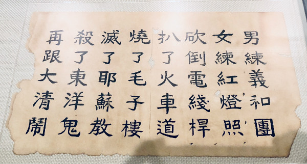 博物馆将红灯照旧照片摆出来,应该还是为了表现妇女在这一运动中所起的作用。她们打破了传统的角色限制,跨出了家庭,借着“修习法术”、“保卫国家”等正当理由参与了公共事务。但与此同时,如陈独秀曾评论的,“义和拳就是全社会种种迷信种种邪说的结晶”,他们认为一切天灾人祸都是洋人和基督教带来,邪恶不伦。义和团请来神仙附身,意图杀死洋鬼子、毁灭西方科技。如今看来匪夷所思的是,他们认为洋人能通过女人裸体和秽物(排泄物和大姨妈等)破解义和团神力,为了以其人之道治其人之身,他们也动用了女性作为武器,比如红灯照。