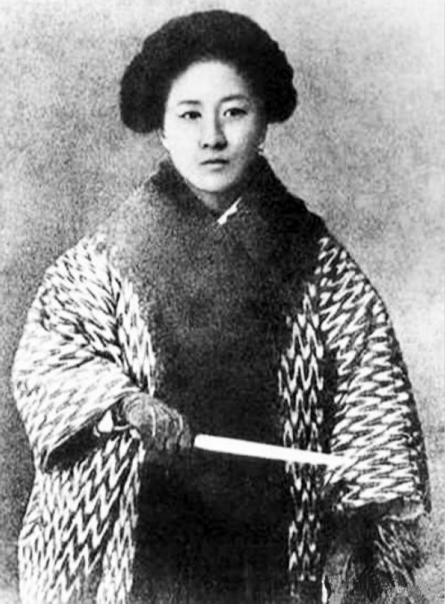 这张照片,很帅。作为女权主义诗人和革命者,她从小就有男子的志趣,然而还是服从了包办婚姻,嫁给了湖南富商,生了两个孩子。但她在随当官的丈夫来京后,更加特立独行,包括身着男装到戏园子看戏,轰动一时。1904年,她终于离开家庭,东渡日本留学,积极投入课外活动,提倡女权,与其他热衷改革想要回国革命的中国学生联系,加入反清秘密组织,包括光复会和孙中山的中国革命同盟会。