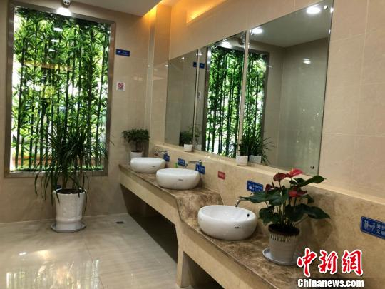 洗手间地面、洗手台干净明亮,设施齐备。 朱晓颖 摄