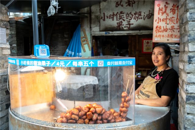 60后,在成都武城大街开了一家糖油果子店,被称为“小时候的糖油果子”。上世纪90年代初期,肖易江和丈夫双双下岗。为了生计,从此开始做起了炸糖油果子的生意;她炸了近30年糖油果子,成了网红。最近,支付宝特地为肖易江添置了新的货架、新的灶台、新的招牌甚至还有新的围裙,她告诉记者,“支付宝帮助了我太多了,感觉现在越来越离不开它了”。