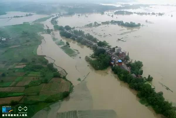 资料图片:2016年7月5日,安徽安庆市宿松县五里乡航拍画面,多处村民房屋被洪水淹没。