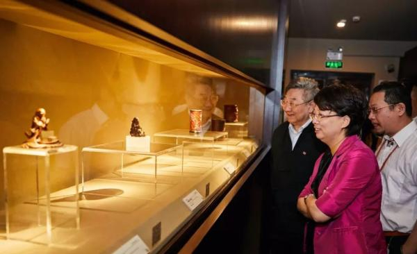 嘉定竹刻博物馆展出现场,韩天衡等在观展
