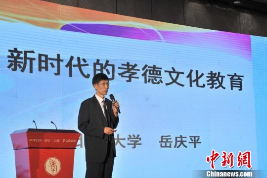 中新网杭州5月19日电 (黄慧)“在中国特色社会主义进入新时代的今天,我们应在全社会范围推广和辐射上虞弘扬孝德文化的先进经验和成功做法,以进一步推进全社会各阶层的孝德文化教育和孝行天下风气。”19日,在2018中国·绍兴(上虞)孝文化论坛上,北京大学教授、博士生导师岳庆平在演讲中如是表示。