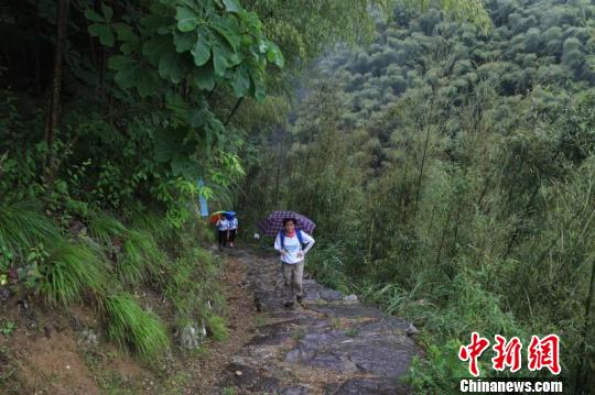 箬岭古道徒步大会在安徽歙县许村古镇举行,图为徒步爱好者行走在古官道。 张俊 摄