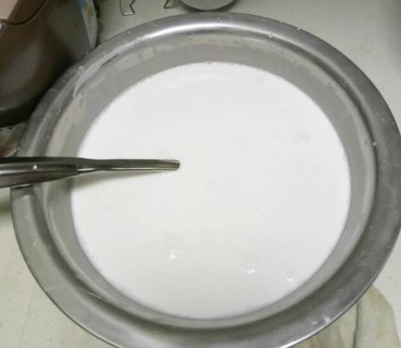 1、把150克的粘米粉倒在盆中,加入清水450克均匀搅拌。(如果想更细腻,可放置一边自然泡3到4小时,让粉与水更均匀)