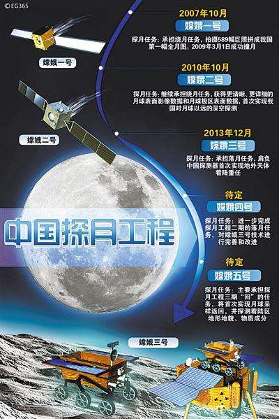 2004年,中国正式开展月球探测工程,并命名为“嫦娥工程”。目前,已经发射了嫦娥一号、二号和三号。嫦娥一号完成了我国探测器首次奔月,嫦娥二号是嫦娥一号的备份星,同属探月一期工程,但完成了更多科学任务。嫦娥三号任务是我国探月工程“绕、落、回”三步走中的第二步,也是承前启后的关键一步,它实现了我国航天器首次在地外天体软着陆。2018年5月发射嫦娥四号中继卫星,年底发射嫦娥四号探测器。嫦娥四号是嫦娥三号的备份星,实现人类探测器在月球背面首次软着陆,开展原位和巡视探测,以及地月L2点中继通信。2019年发射嫦娥五号探测器,实现区域软着陆及采样返回未来。未来,我国还发射嫦娥五号的备份星——嫦娥六号月球探测器,实现月球极区采样返回。在完成中国探月工程绕月、落月、返回三期任务后,中国将继续探月四期任务,包括月球背面着陆巡视、月面二次采样返回、月球南极着陆探测、月球北极着陆。