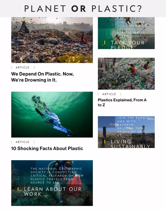 这个计划的主题名为“PLANET OR PLASTIC”(是地球还是塑料星球?),与该杂志6月刊同名,