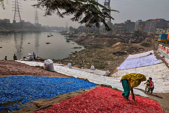 而在孟加拉国首都达卡,同样是Buriganga河岸上,有着许多在此收集干净的塑料垃圾的家庭,他们把塑料垃圾清洗晒干后,卖给当地的回收商,令人难以置信的是,在达卡从事这种非正式回收行业的大约有12万人,也就是说,人类产生的塑料垃圾之多,已经让塑料垃圾回收变成了一个行业,更可悲的是,世界仅有9%塑料回收率竟然大部分都是由非正式回收的人们所贡献出来的……