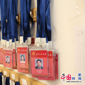 志愿者工作站内,墙上整齐地挂着一排排故宫志愿者工作证。中国网实习记者 赵丹 摄【点击观看组图】