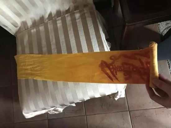 “你刚来时病气很重,自昨天绑符后明显减轻了不少。”沙发上的张师兄斜着身子,手掌在一名中年妇女的臂膀上隔空来回抹。中年妇女自述脊背一直发凉,央求张师兄再“刷刷气”。张师兄哈哈大笑,将白酒倒入盛有朱砂的小盒内,用毛笔拌了拌,然后在妇女两个掌心内各画了一个类似五线谱高音谱号的符;随后,手指在她后背、手臂上,不断像发“鸡爪疯”样,隔空做狗刨状动作,边“刨”边指导:“寒气出来了吗?”中年妇女皱了下眉,一脸困惑,喃喃道:“好像有那么点。”张师兄直斥她不够敏感,马上回房继续绑符。何谓绑符?记者一旁看到,就是在长条黄布上,事先印上符记,再将其绑贴在脚掌心,即如刘先生孩子那样。