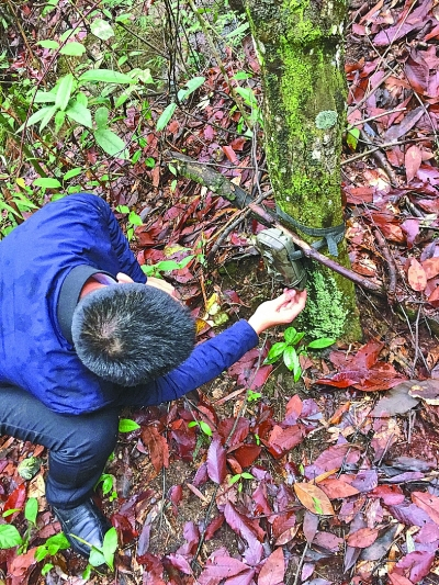观测人员在齐云山保护区设置红外相机。 均为全国生物多样性观测网络供图