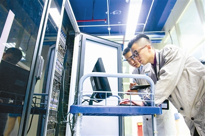 5月7日,国家超算深圳中心,工作人员正在检测维护机组运营。本报记者 吴凡 摄