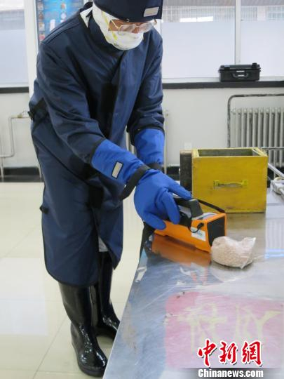 大连海关关员对截获放射性超标物品进行检测。 孙文龙 摄