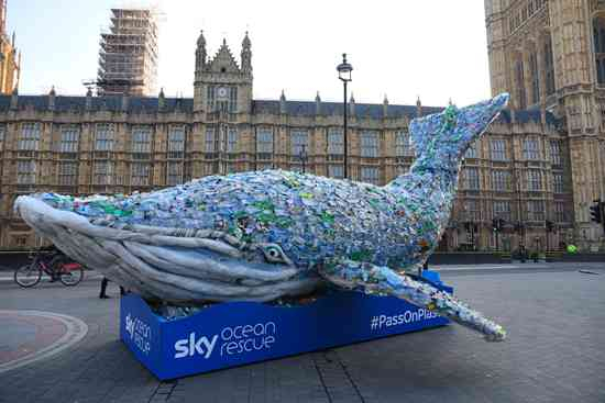英国会大厦前现巨型塑料鲸鱼,呼吁减少海洋垃圾。视觉中国供图