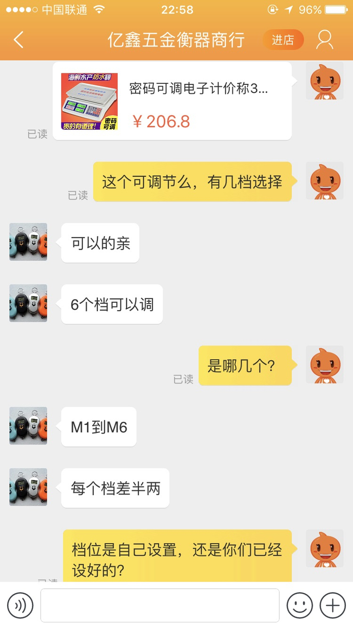 亿鑫五金衡器商行客服对话