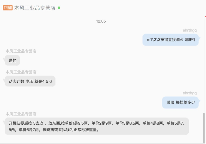 木风工业用品专营店客服介绍一款“可作弊”计价秤操作方法。