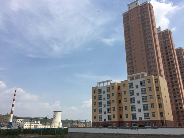 米脂县最大的保障房项目,因建在金泰氯碱公司卫生防护距离内,无法交付使用。澎湃新闻记者 王健 图