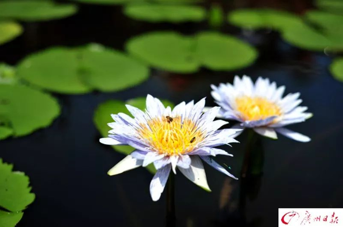 荷花和睡莲,它俩有何不同呢?一是两者同科不同属。荷花是睡莲科,莲属;睡莲是睡莲科,睡莲属。二是生理形态不同。荷花的花和叶是挺出水面上的,而睡莲的花和叶是浮在水面上的。三是花期不同。在广州,荷花5月至9月开花;而睡莲,一年四季都吐艳。