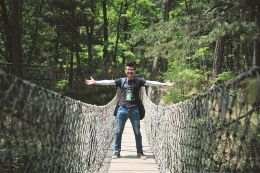 走南闯北见多识广的记者来到森林里,他表现得像孩子一样开心。