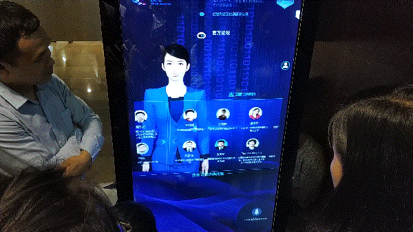 参观市民在和虚拟志愿者对话