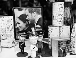 2、英国温莎的商店橱窗里摆放着王室婚礼的纪念品(5月18日摄)。