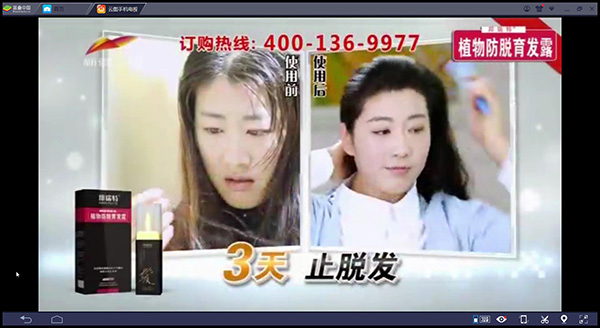 几乎在“邦瑞特”广告在某些省级卫视播出同时,另一款生发产品汉方育发素广告也在一些省级卫视播出。