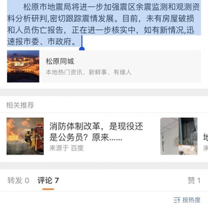 原标题:松原发生5.7级地震 地震局尚未有房屋破损和人员伤亡报告