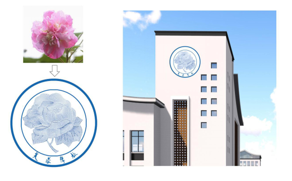 Logo图案抽象自湖南省省花——芙蓉花,下题“芙蓉学校”,寓意像芙蓉花一样开遍湖湘大地,把关怀送给贫困地区的孩子。