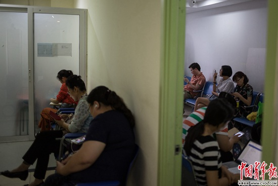一家英语培训机构,家长坐在20平方米的小房间里等孩子下课。