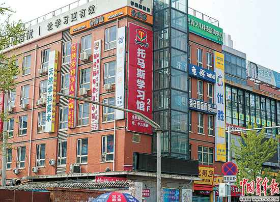 他们上课的绮美大厦算不上起眼。6层的高度被附近居民楼轻松超过,临街只有几个油炸小吃和连锁快餐门脸儿,入口窄得三四人难以并排通过。但这里每周要接待五六千个参加校外培训的孩子和他们的家长,楼里有30余家奥数、英语、钢琴、舞蹈、美术、跆拳道、幼小衔接等培训机构。这里地处北京市海淀区,3公里之内坐落着包括人大附小、中关村三小等名校在内的10多所小学。这样的大厦在海淀区、在北京市并不少见。
