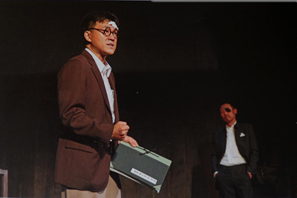 《喜剧的忧伤》剧照(摄于2011年),(左起)何冰饰编剧,陈道明饰审查官。