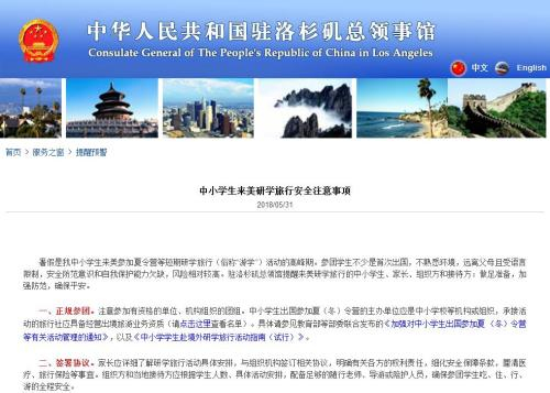 原标题:赴美研学旅行高峰期到来 中领馆发布安全事项