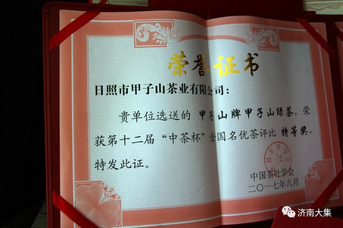 在日照甲子山茶厂办公室,记者看到了一排排奖杯和奖状。仅仅在2017年,就有几项沉甸甸的荣誉:“中茶杯”全国名优茶评比特等奖!