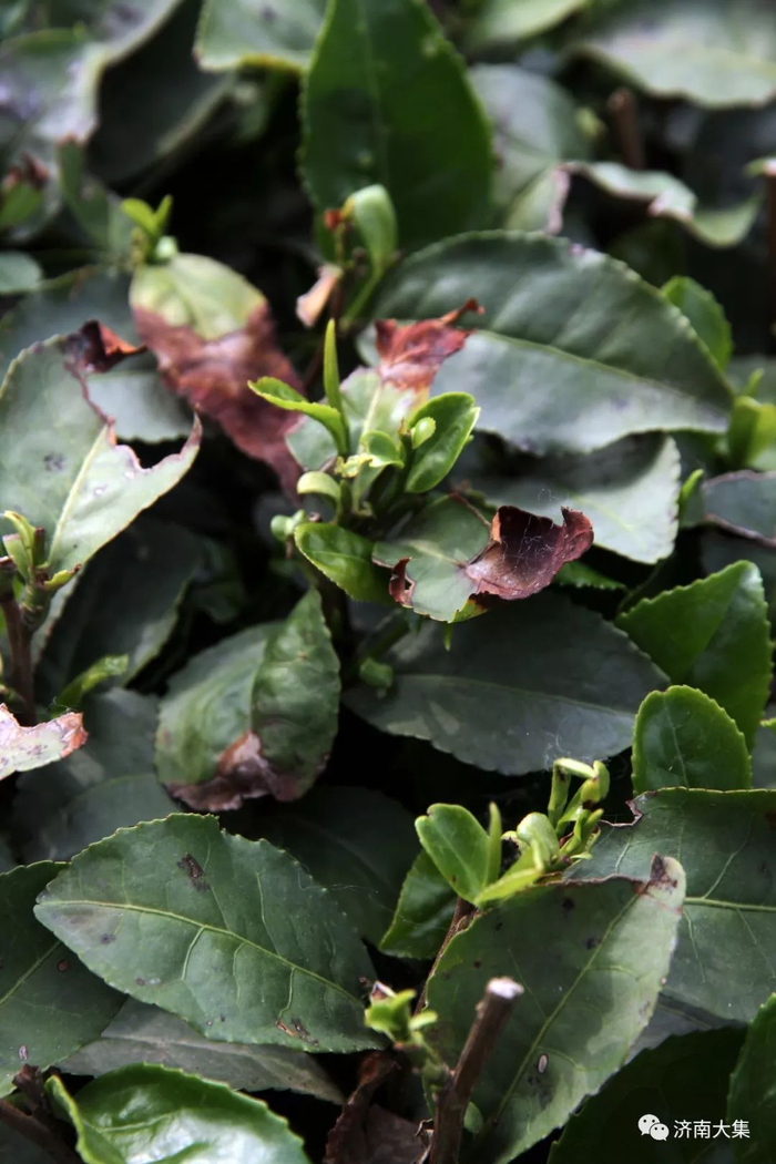 “这是无公害绿茶,叶子上有虫眼,说明我们的茶叶没打过农药。”指着一株株茶树,赵总介绍说。记者注意到,很多叶上都有虫眼,或者残缺,有的叶片已经枯黄。