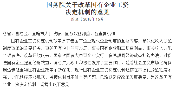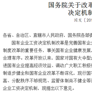 25日,国务院正式发布《关于改革国有企业工资决定机制的意见》,一份影响着近4千万国企员工工资的重磅文件正式面世!