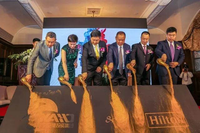 合同签完后,云南滇中新区党工委委员、管委会副主任李树勇,空港投资集团董事长王磊,希尔顿酒店大中华及蒙古总裁钱进,希尔顿酒店大中华高级发展总监经纬,希尔顿酒店大中华及蒙古高级设计与项目总监杜今,签约仪式组织筹办方盛联国际董事总经理何超6位代表上台举行撒金沙仪式庆祝签约成功。此次合同签约成功后,作为云南滇中新区出资并直接管理的国有企业,昆明空港投资集团将携手享誉世界的希尔顿品牌酒店在云南唯一的国家级新区——滇中新区合作建设3个希尔顿旗下的品牌酒店。