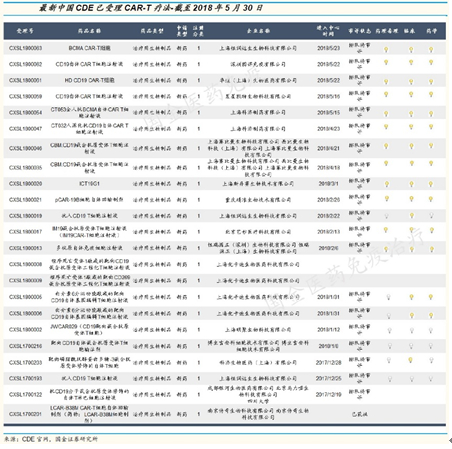 国金证券认为,金斯瑞研发CAR-T能够获得FDA批准,证明了中国在CAR-T疗法临床转化上的快速与专业水平。在2017年12月受理中国第一个CAR-T疗法临床试验申请(金斯瑞所提交)到今天,CDE已经从无到有的受理了23项CAR-T相关疗法的临床试验申请;其中,金斯瑞已在3月获批临床,而另外三家——博生吉(安科生物)、恒润达生、明聚生物(药明巨诺)已经进入综合审评阶段(毒理、临床、药学全部审评完毕),获批或在近期。