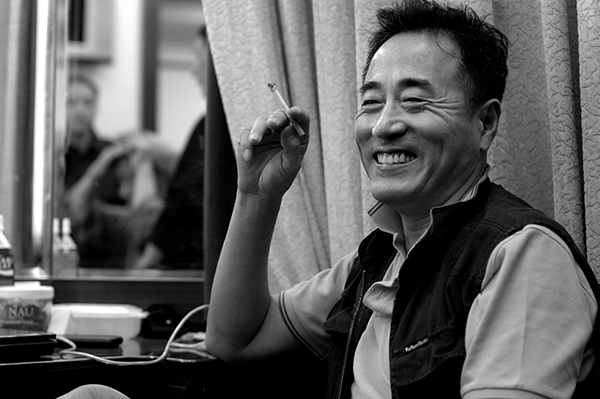 “我在三十岁前没演过重要角色,在剧院就是踏实地学戏、演戏。跑龙套,看别人分析剧本、排练,听别人谈角色,带着疑问到排练场看人家怎么试戏,比较看有什么不同,实际排练时他们扔掉了什么加强了什么,最后看人家上台表演时的效果如何。整个过程都是特别利于学习的。我在《蔡文姬》里饰卫兵,拄着大杆在台上一站就是一场戏。排《王昭君》时,主要角色谈人物,谈剧本,通知群众演员可以不来,我照样去了。这一礼拜的旁听让我兴趣盎然,因为我们这代人缺课!我深知缺什么就要补什么。