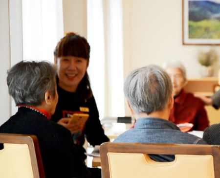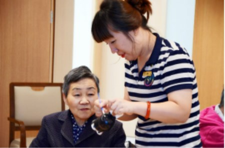 答:养老服务最重要的是对老人的关爱之心。老人心里非常清楚谁对他们真心好,只要真诚相待,他们就会敞开心扉。欧葆庭颐养中心在康复疗法方面有很多探索,也是全国的培训基地,平时可以接触到很多法国专家亲自授课,精神运动疗法、水中康复疗法、舞蹈疗法等,我在摸索游戏作为非药物疗法中的每一点进步。