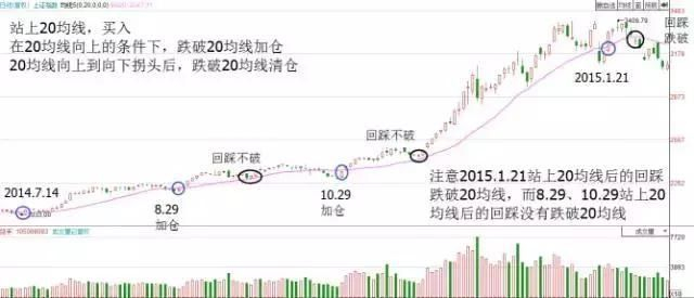 当20均线向上时股价回踩到20日线附近或者跌破20均线并迅速收回,而且成交量并不大。股份在回调后获得20日均线支撑是加仓的最好时机。