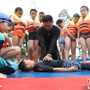 6月1日,“预防溺水、从我做起”宣传教育活动在重庆涪陵红酒小镇举行,小朋友们在志愿者的指导下学习溺水自救技巧,让他们学会自救、自护和互救的方法,度过一个别样的儿童节。溪流、山塘、水库成为不少儿童暑期的安全隐患,防溺水教育已刻不容缓。在教学中,巅峰救助城市安全教育中心志愿者详细地讲解防溺水事故以及水上救生知识,并现场指导学生在溺水事件发生时如何进行自救、他救以及实施救援的重要原则和步骤等。“落水后千万要保持大脑的清醒,冷静地将口鼻露出水面,身体下沉时要用手掌向下压水……”现场还有救生员现场演示了溺水后,怎样施救并模拟演示心肺复苏操作要领。同时,教会大家如何使用救生衣外,还主要教导如何在溺水现场使用绳子、木棍和木板等常见的工具,怎样做到临危不乱、快速抛撒救助工具、救助者如何抓紧旁边的树木或双脚紧紧抵住地上坚固物等,对姿势、动作等作了具体培训,并教会用矿泉水瓶、裤子等制作成简易的救生衣进行救援。