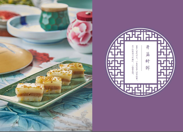 《红楼飨宴》中的20道菜肴根据时令分为春、夏、秋、冬4个篇章,遵循了贾府的“不时不食”原则,即不到时令不吃,而到了时令,就挑产地最好、质量最佳的吃。作者曹雪芹家里原是江宁织造,在江南为皇帝采办各色食物和日用品,都由运河运至北京,所以他写贾府里寻常吃食,动辄都是新鲜江南特产。例如史湘云还没搬来贾府长住前,袭人按宝玉吩咐给湘云送去新鲜的红菱和鸡头米,这两样都是苏州的特产。因此虽是简单的食物,却暗含了“早秋苏州四角水红菱直送北京”的意味。