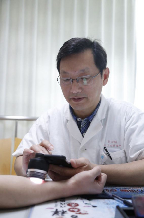 依托互联网信息科技,通过一台手机、一个app软件应用和一个手持式皮肤镜,复旦大学附属华山医院就将其在皮肤科领域先进的医疗诊断技术辐射到了社区医院。