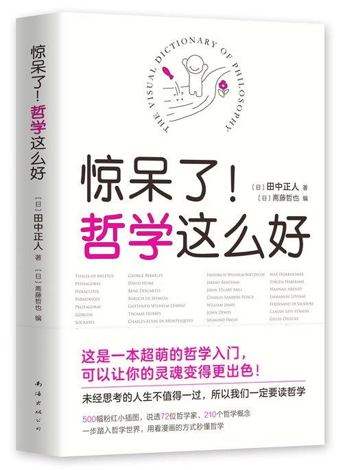 这本书的名字已经道出了哲学的起源,那就是惊异。亚里士多德曾将惊异作为哲学产生的条件之一(另一个条件是闲暇)。为什么呢?因为惊异的对立面乃是理所当然,如果我们对任何事情都习以为常,那么就不会再去追问,而一旦我们惊异了,我们就会开始提问,发问伴随而来的就会是思考。这本试图通过图解的方式解码世界72哲人以及古今210条哲思命题的书确实是让读者惊异的。其神奇之处不仅在于视觉上的“萌”(全书都是粉红色的漫画),而且还在于其内容跨越了2600年的人类思想史,展现了从古希腊到中世纪、近代,再到如今二十一世纪的一些现代思想片段。它不需要你从头到尾地连续阅读,而是你翻到任何一页都可以读起来,进入思考的状态。所以,它更像是漫画的哲学辞典,又像是关于哲学命题的思维导图。与创造抽象的哲学概念不同,直观的解构这些概念乃是这本书作者的初衷。正如田中正人所说:“我想把邂逅那些伟大思想时的震惊直观地呈现出来,于是有了这本书。”