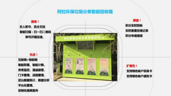 同时,由于积分申请可以提现,大大提高居民参与的热情。有了智能垃圾分类回收站,可实现无人职守,自主交投,实时获取积分,实时查看投递记录,积分申请提现。它还支持绿色账户实体卡和虚拟卡。垃圾分类获得的积分,居民可以兑换洗衣粉、洗洁精、香皂等生活用品;每月针对积分靠前的居民,另外设置礼品奖励;在“资源回收日”对分类垃圾进行统一投放的,还可获得额外奖励,从而提高居民参与的热情。