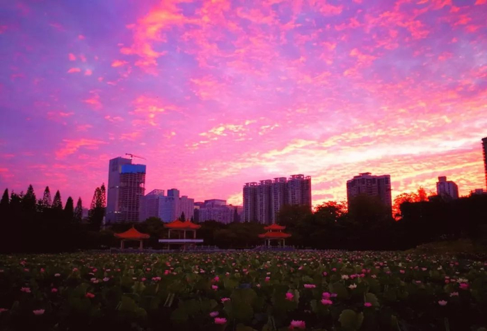 清晨和黄昏去赏花,还可以看到荷花早晚两种绰约风姿。