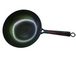 章丘铁锅制作工艺复杂苛刻,七次热锻,五次冷锻,12 道工序,36000 锤锻打,使章丘铁锅光可照人。铁锅表面手触光滑,可见锻打的痕迹,锅体铁质的薄厚分布使铁锅整体受热均匀,炒出来的菜品更加美味。
