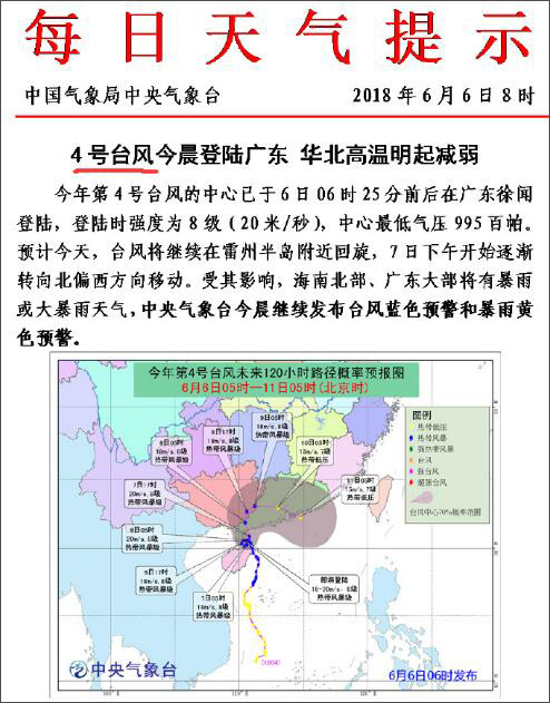 直到6月6日早上6时,4号台风登陆我国广东省时,它都还没有名字。