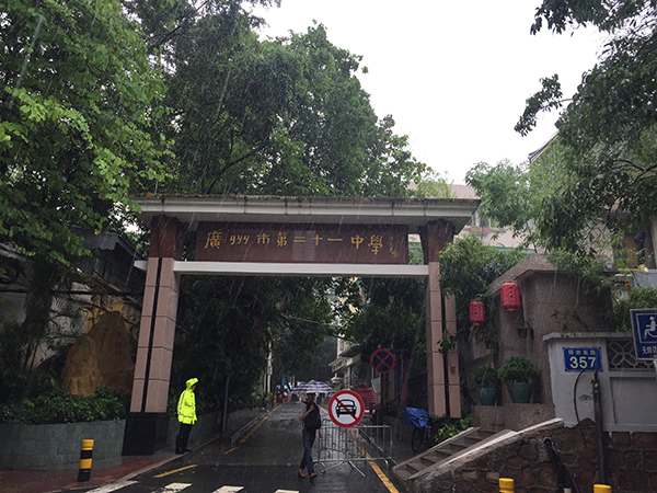 早上8点,广州市第二十一中学的考点仍是大雨倾盆,所幸由于地势比较高,未出现水浸街的情况。考生家长黄先生向澎湃新闻(www.thepaper.cn)介绍,暴雨已经下了一夜,“我一整个晚上都没怎么睡觉,一直听着外面,发现(雨)越下越大。担心下雨水浸街,万一迟到了怎么办?”