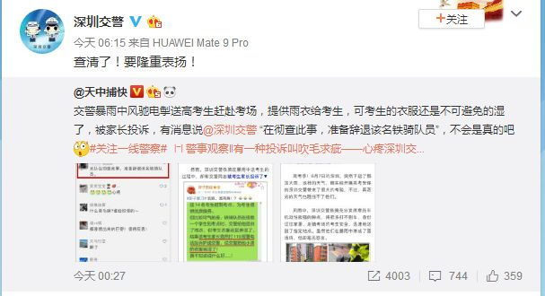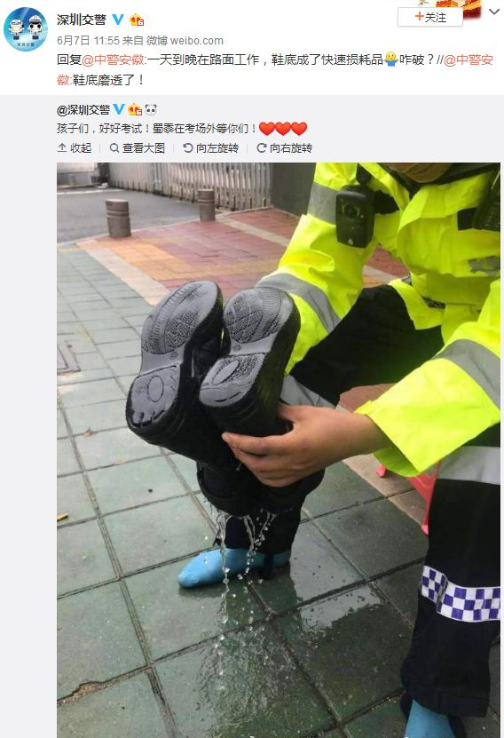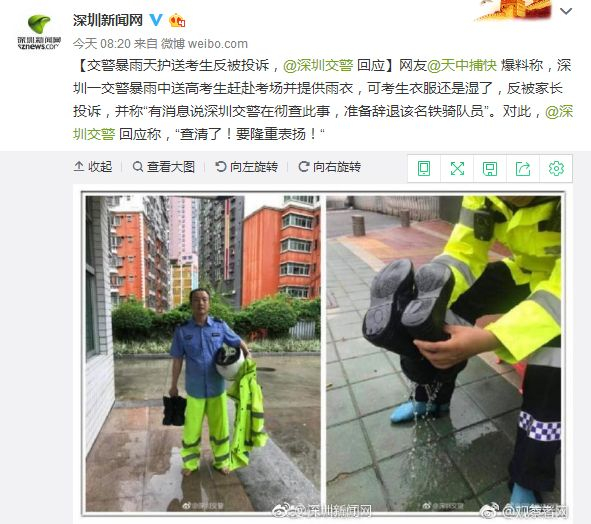 而据深圳新闻网报道,当时送完考生的交警是这样的: